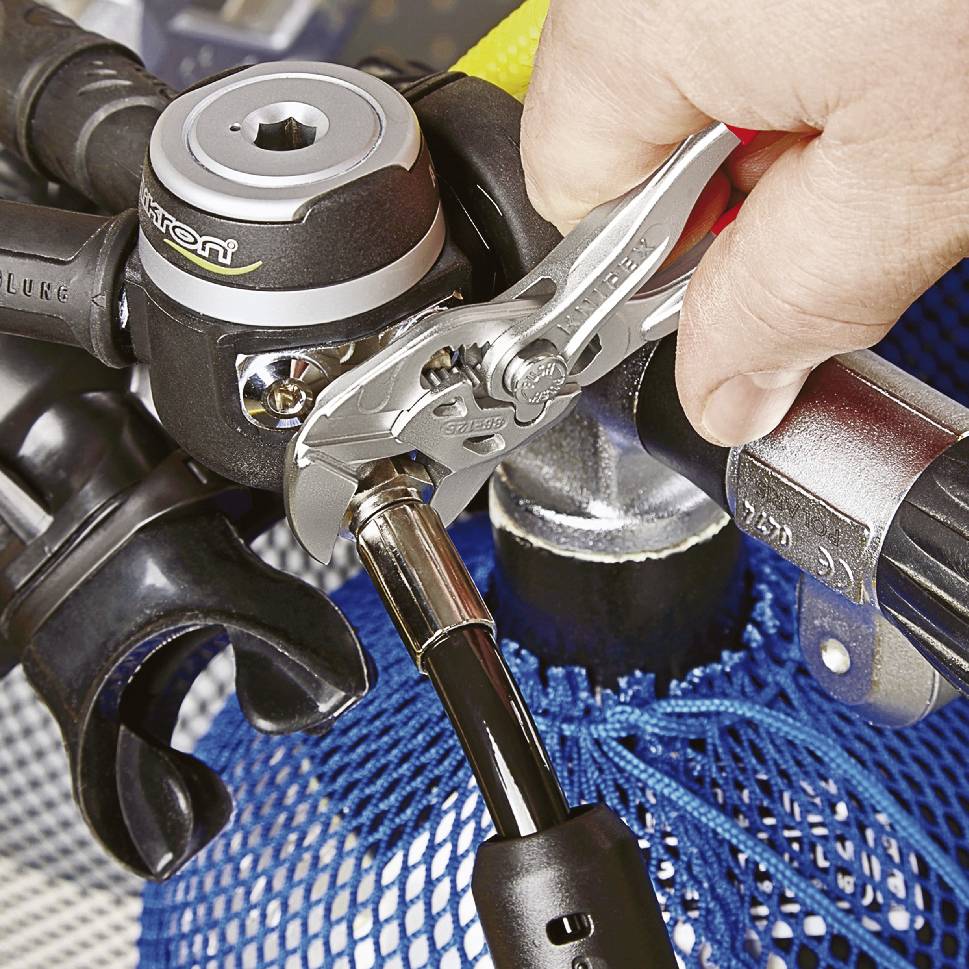 Gladke čeljusti za nežno montažo okovja s površinsko prevleko - delajte neposredno na kromu !. Nadomešča nabor ključev, metričnih in carskih. Ključi mini klešč za natančno delo. Posebej primeren za delo na majhnih vijačnih povezavah. Zelo dobra dostopnost v zelo tesnih prostorih. Idealno tudi za prijemanje, držanje, stiskanje in upogibanje obdelovancev. Gladke čeljusti za nežno montažo okovja s površinsko prevleko - delajte neposredno na kromu !. Brez poškodb na robovih občutljivih armatur zaradi sistema brez celotne površine, ki se ne igra. Hitro nastavljanje s pritiskom na gumb neposredno na obdelovancu. Brez nenamernega prilagajanja prijemalnih čeljusti in brez drsenja sklepa. Nadomešča nabor ključev, metričnih in carskih. Brezstopenjsko oprijem vseh velikosti ključa do določene zmogljivosti s pomočjo vzporednih čeljusti. Hod med prijemalnimi čeljustmi omogoča hitro zategovanje in popuščanje vijačnih spojev po principu ratchet. Visoka sila vpenjanja zahvaljujoč 10-kratni krepitvi rok. Kromirano vanadijevo električno jeklo, kovano, olje utrjeno