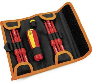 Za delo na delih pod napetostjo do 1.000 VAC. VDE in GS odobreno. Zaščitna izolacija se brizga neposredno na bit, ki je vgrajen v bit v prednjem delu. Držalo za bit: Izolirano držalo za bit Clicfix iz kovinskih ključavnic zanesljivo vse tanke bise.