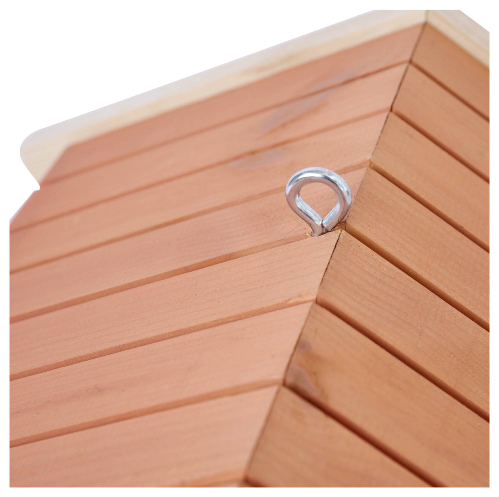 Visečo ptičjo hišico lahko pritrdite na drevesa, vrtne lope ali balkonske ograje. Za lažjo namestitev je priložen kovinski obroč.