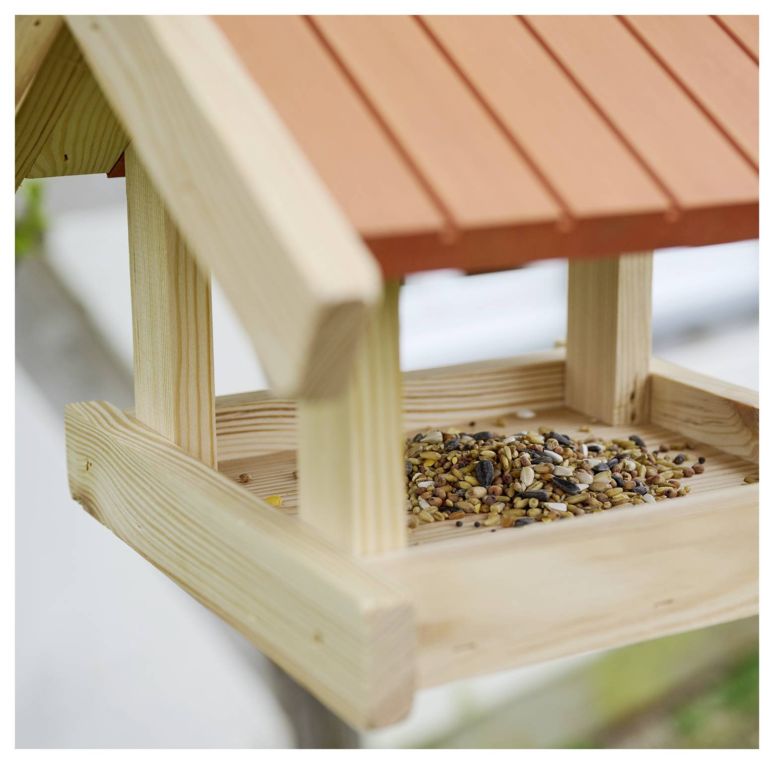 Nadstrešek nudi vašim pernatim prijateljem udobno zavetje pozimi in ščiti krmišče pred mokroto in snegom.