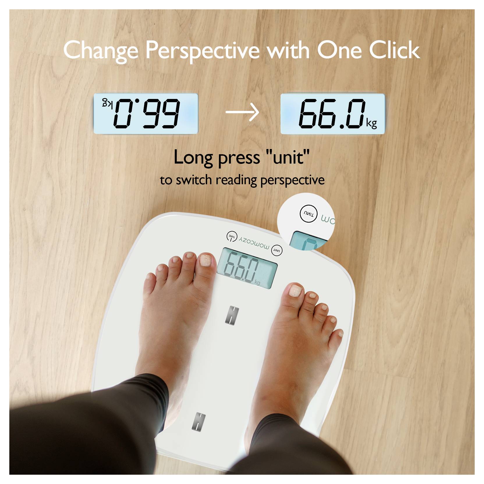 Če držite pritisnjen gumb "UNIT", lahko prilagodite kot gledanja. Nočna lučka omogoča enostavno branje tudi v temi.