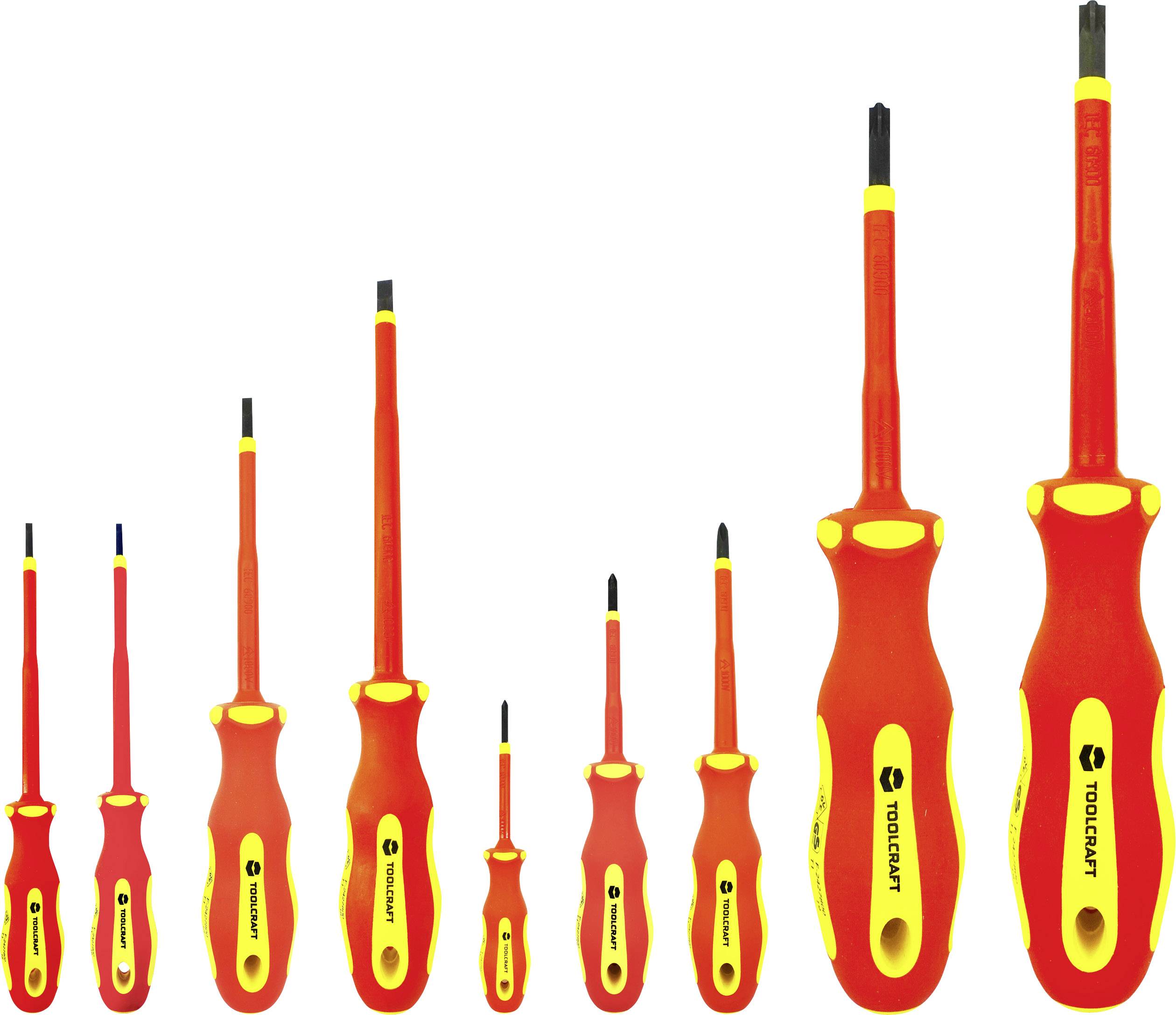 9-delni komplet izvijačev Wera VDE z večkomponentnim ročajem Kraftform Plus za hitro in nežno delo: cone trdega oprijema za visoko delovno hitrost, mehke cone oprijema pa zagotavljajo visok prenos navora. Redni preizkus v vodni kopeli pri 10 000 V za varno delo pri odobreni napetosti 1.000 V. Šestkotna zaščita valjev preprečuje nadležno odrivanje na delovnem mestu.